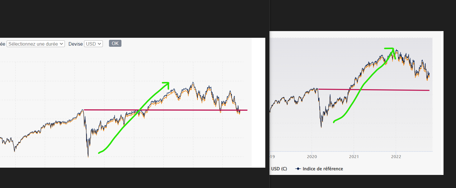 On parle souvent de buyback comme de dividendes "cachée" , avec l indice çi dessus on a les buyback + les dividendes ( réinvestis) .