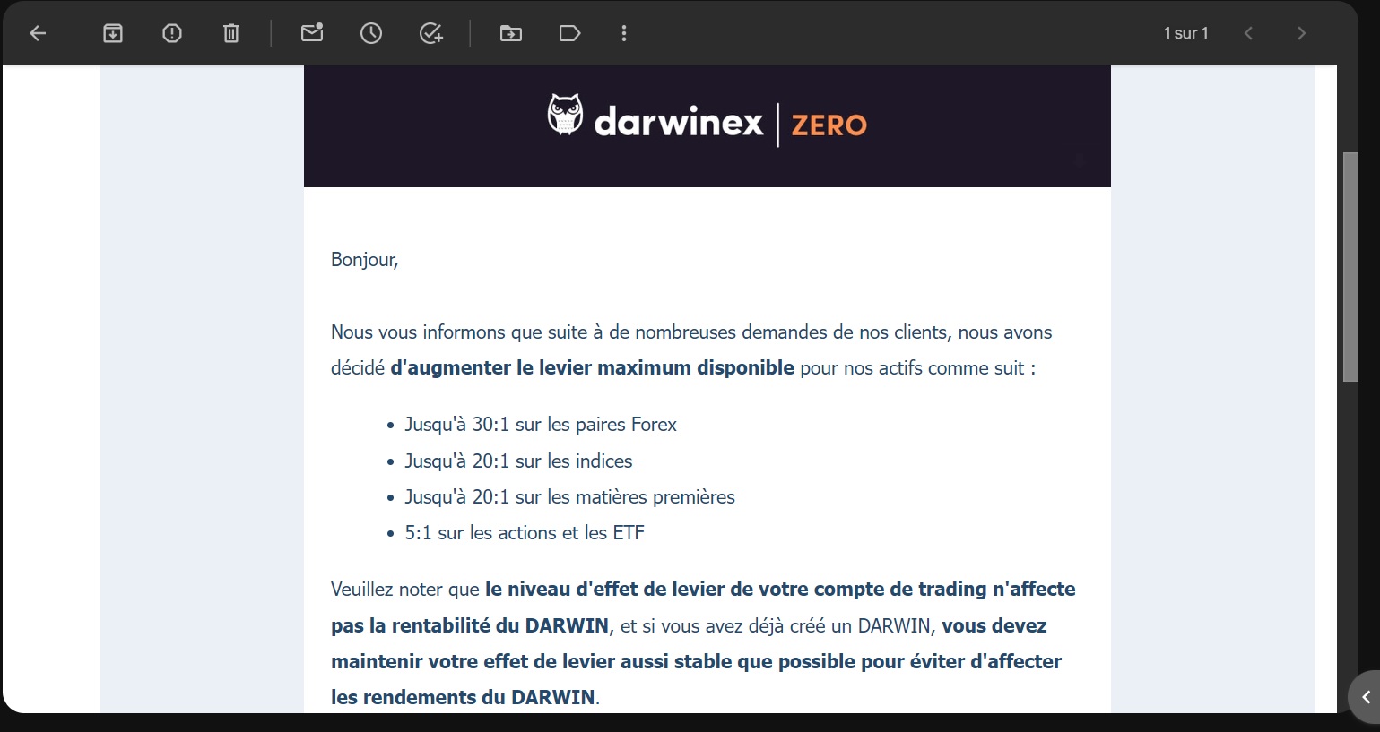Encore du changement ! "Darwinex Zero" retire le levier bloqué à 1:10 sur les devises ! Il passe à 1:30 !