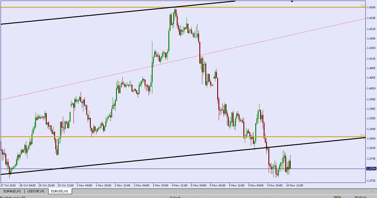 il y a l'eur/usd qui aujourd'hui à bien chuté et à buté à la 38.2 de Fibo à environ 1.3636.