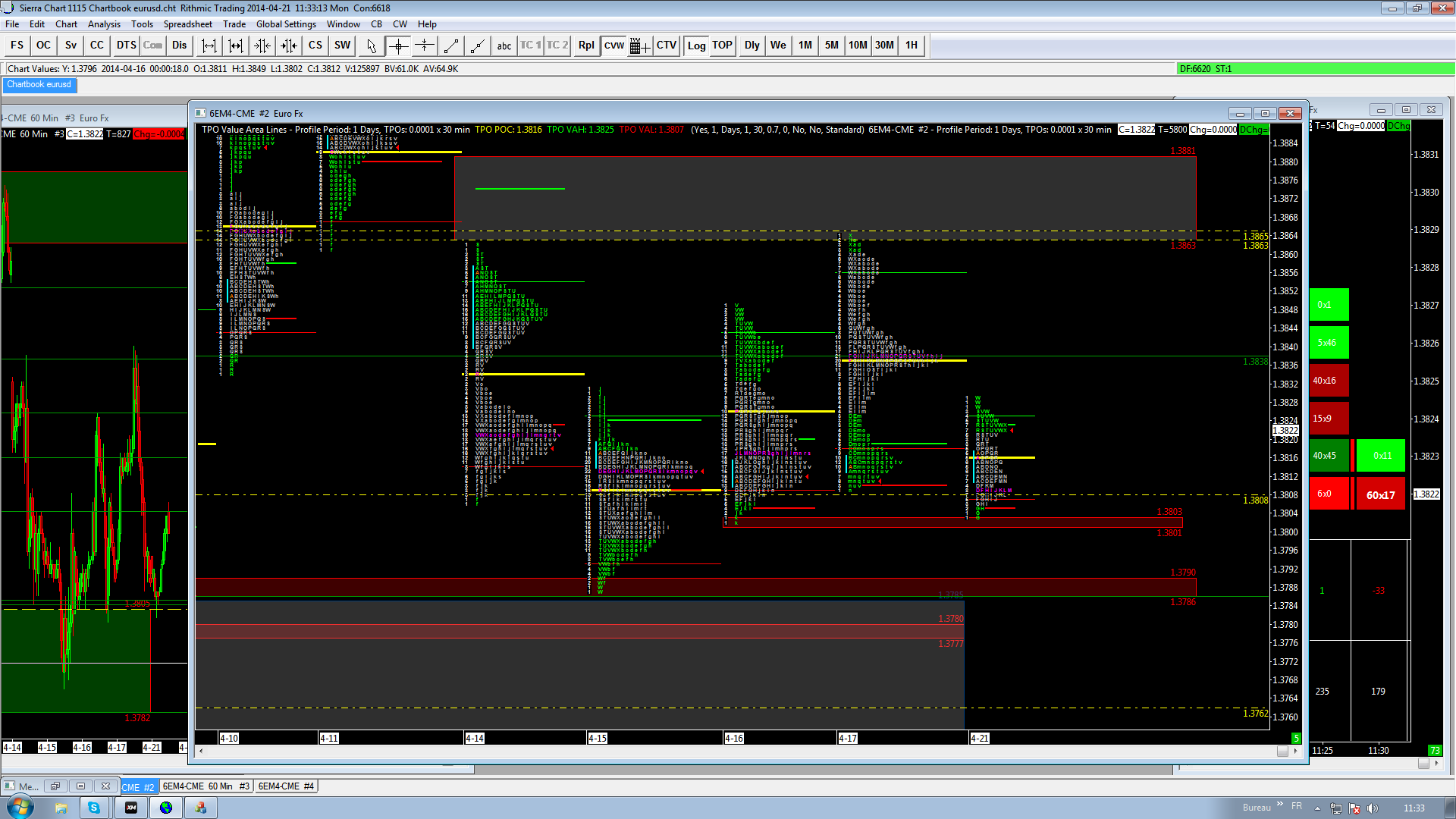 1.3801-1.3803-zone de single print du jeudi 16 avril, comme on peut le voir today nous sommes venus pile dans cette zone pour prendre appui..en cas de break de cette zone, on peut aisément penser que la prochain appui se situera vers 1.3785-1.3790..bref tres utile à mon sens pour de l'intraday et du scalping afin de pouvoir "quadriller" son espace de travail et donc agir en consequence sur des seuils pré-définis.