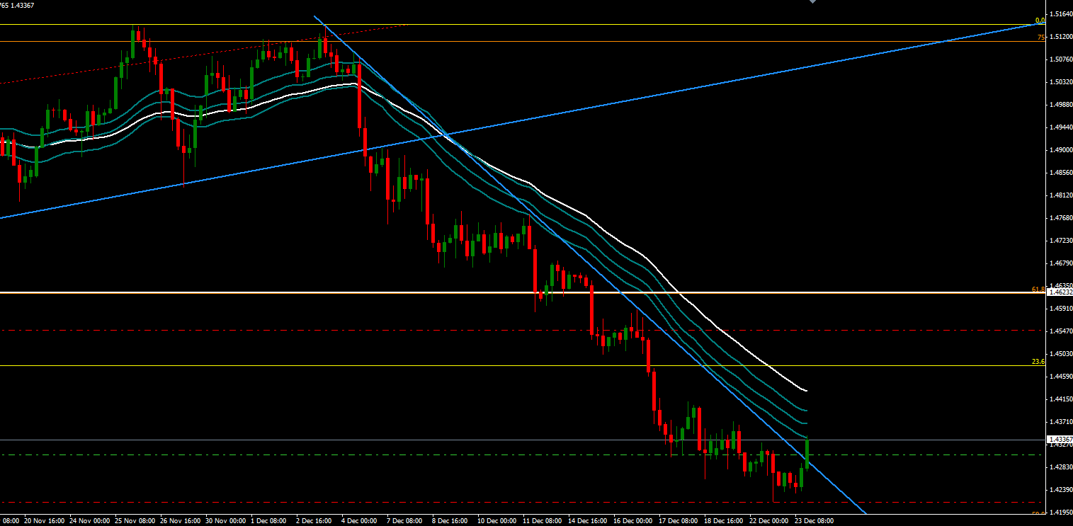 Le SL est placé sou le dernier plus bas à 1.4216 et le TP est placé à 1.4550 (cependant il faut encore que j'étudie le graphique pour trouver un point plus stratégique pour cet objectif, qui va donc peut être changé).