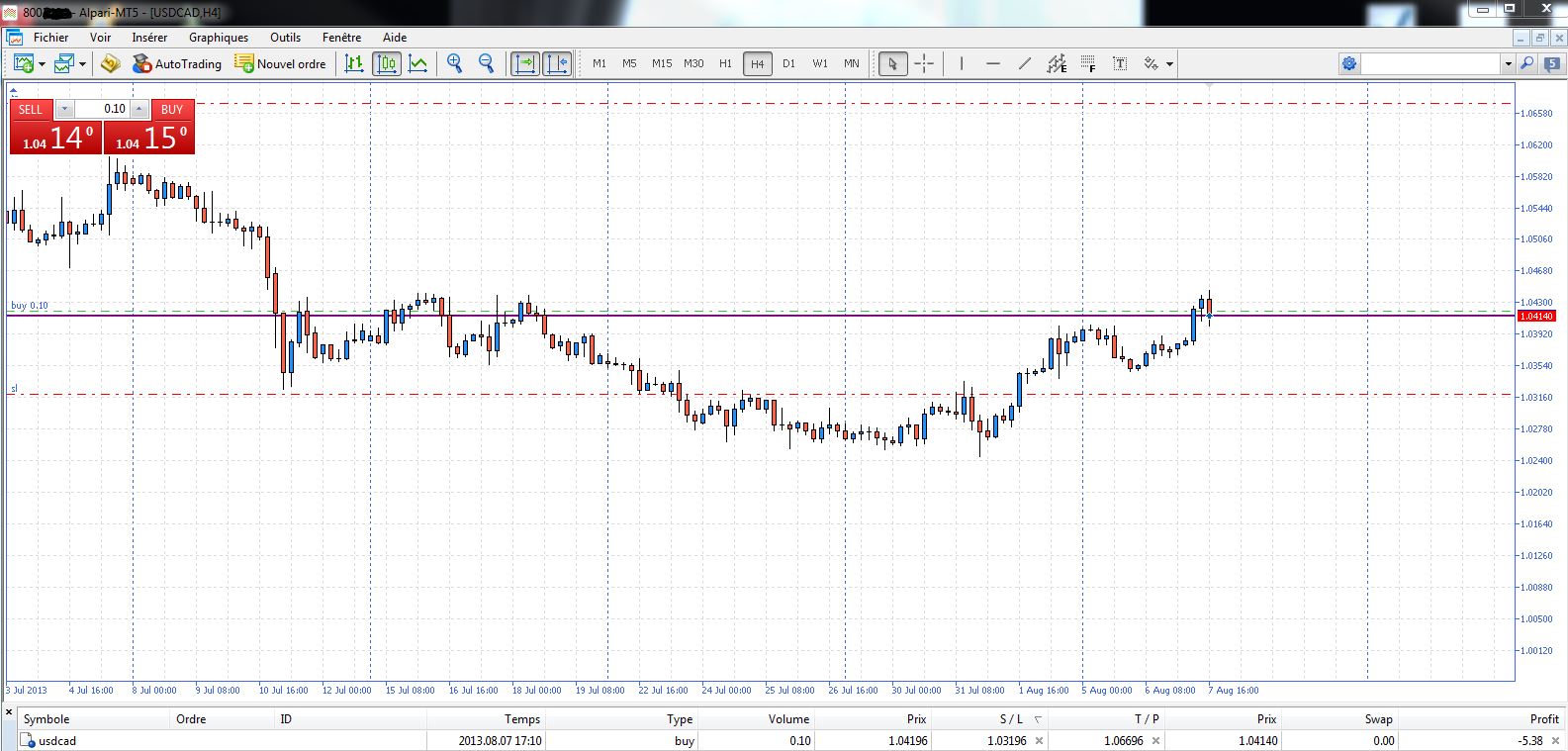je pose un ordre d achat USD/CAD stop loss 100 tp 250!