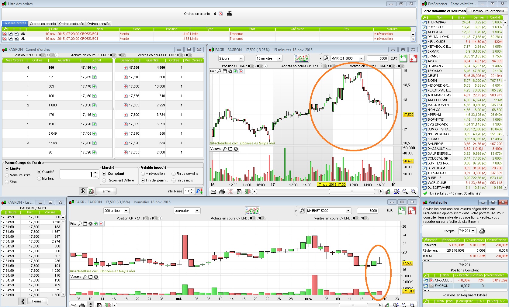 Ce jour avait bien commencé suite à l'achat de FAGRON hier, qui a d’abord bien performé avec +4% au maximum, permettant d'atteindre deux objectifs.