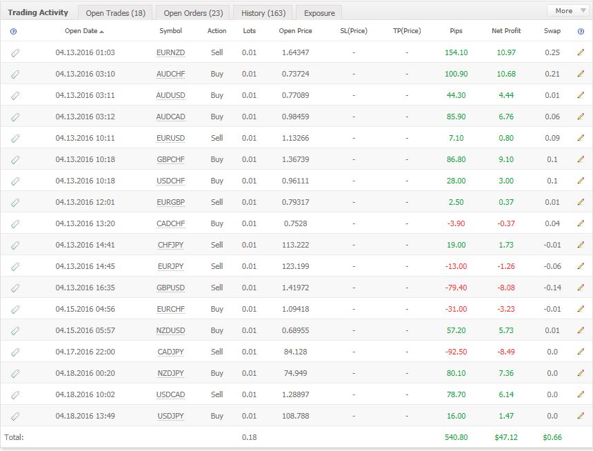 journée flat pour moi mais les mouvements de prix m'ont donnée 21 parités enclenchés sur 22 excellent j'ai hâte de voir ce que le marcher va nous donner!!!