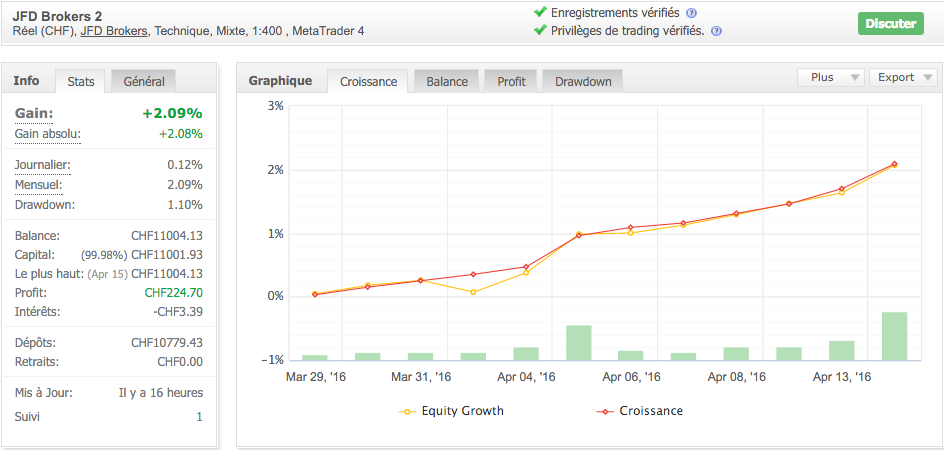 Il n'empêche que le Darwin affiche 2,5 % de gain, contre 1.36 % pour la stratégie, respectivement 1,3% selon MyFxBook.