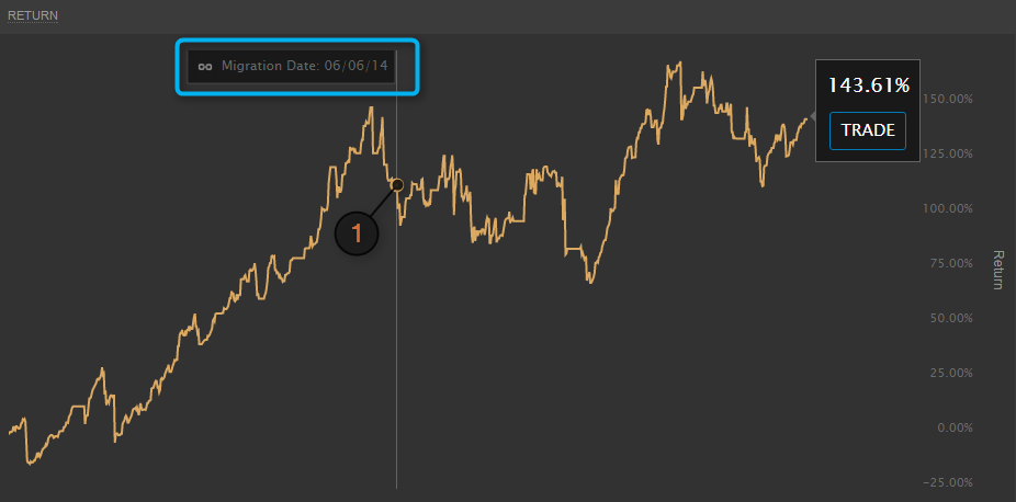 Je découvre une nouveauté chez Darwinex qui consiste à voir la date de migration du compte live chez eux et de fait voir si le track est d'origine (darwinex) ou non.