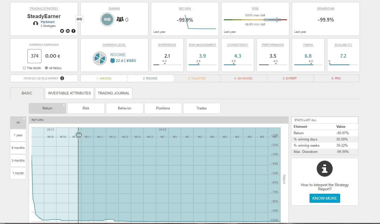 Et voici ce que cela donne au niveau de la statégie chez Darwinex :