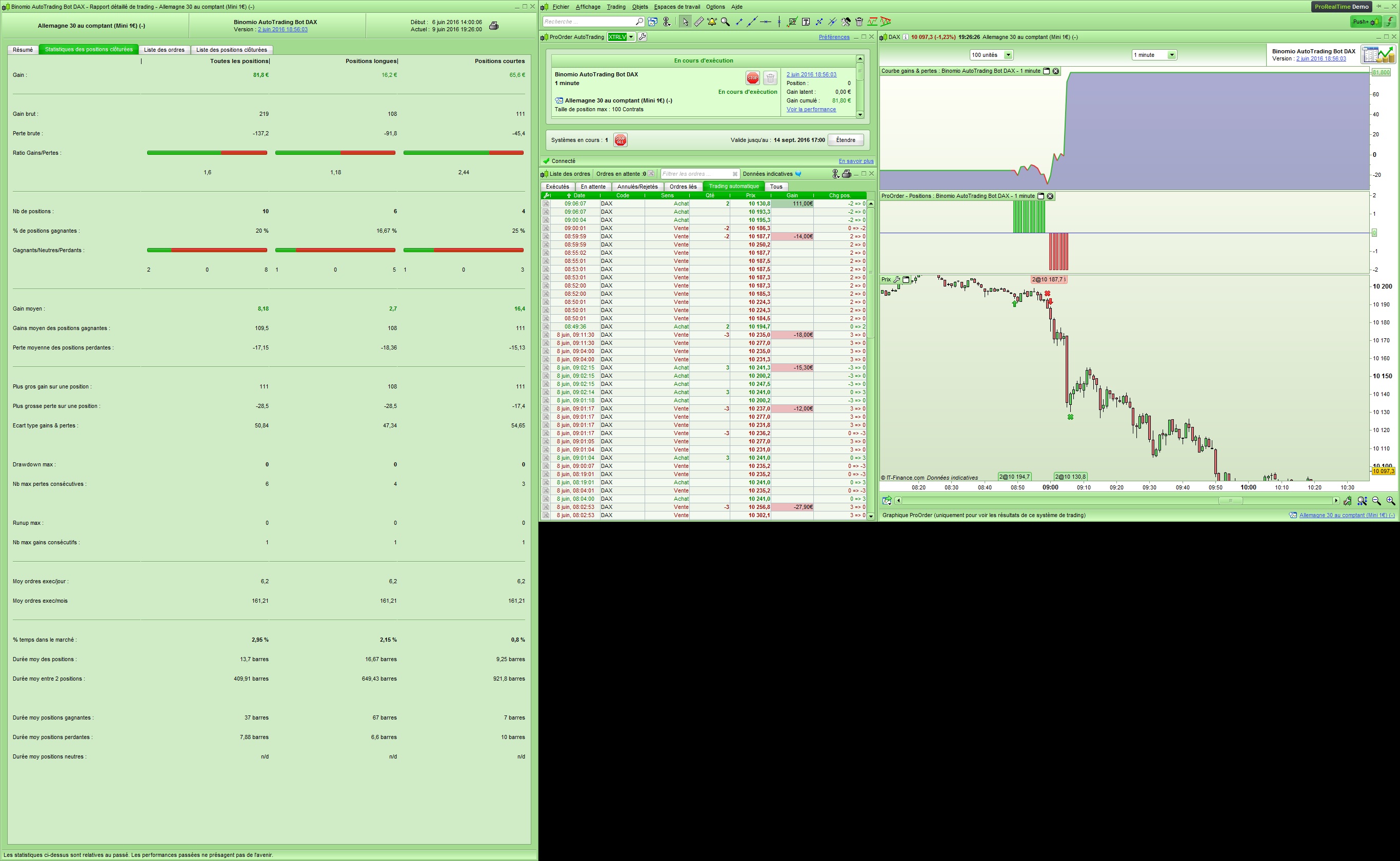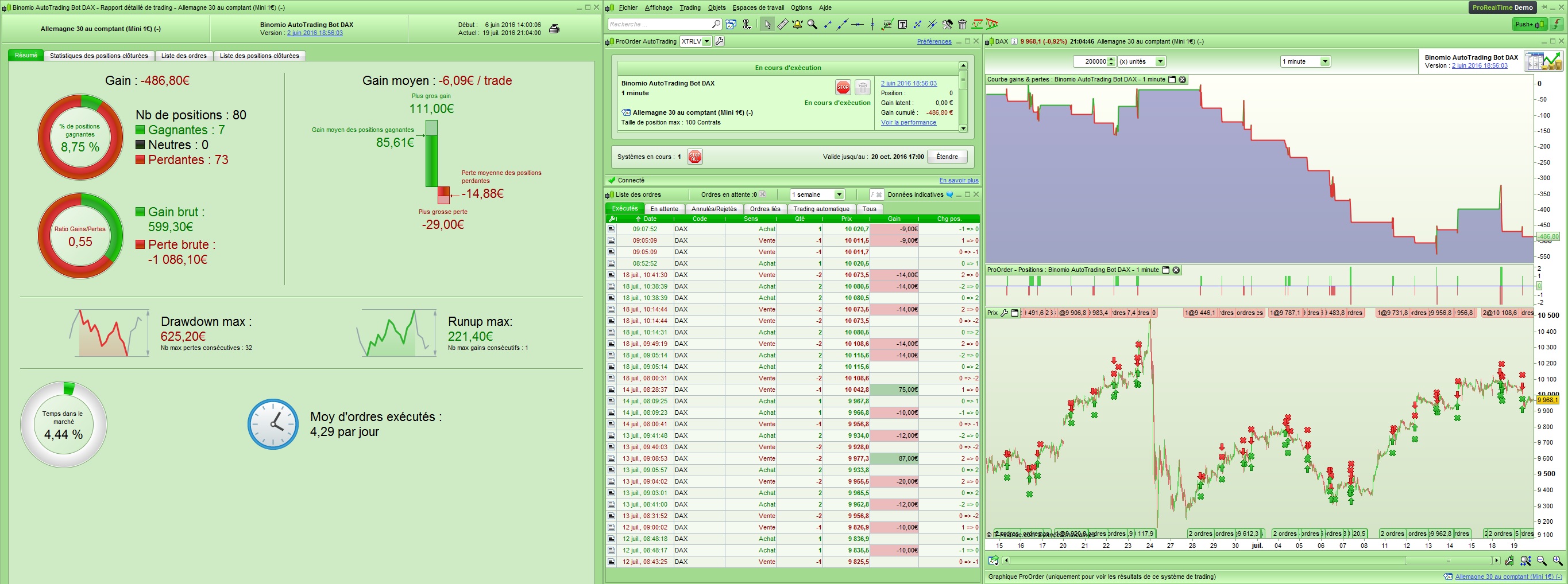 En effet, je trade en réel via une stratégie de trading automatique sous ProRealTime depuis plus d'un an, et les résultats sont conformes aux backtests, et assez bons pour le moment. Vous pouvez suivre cela sur la file de discussions: http://www.videobourse.fr/forum-forex/v ... 12&t=12439 .