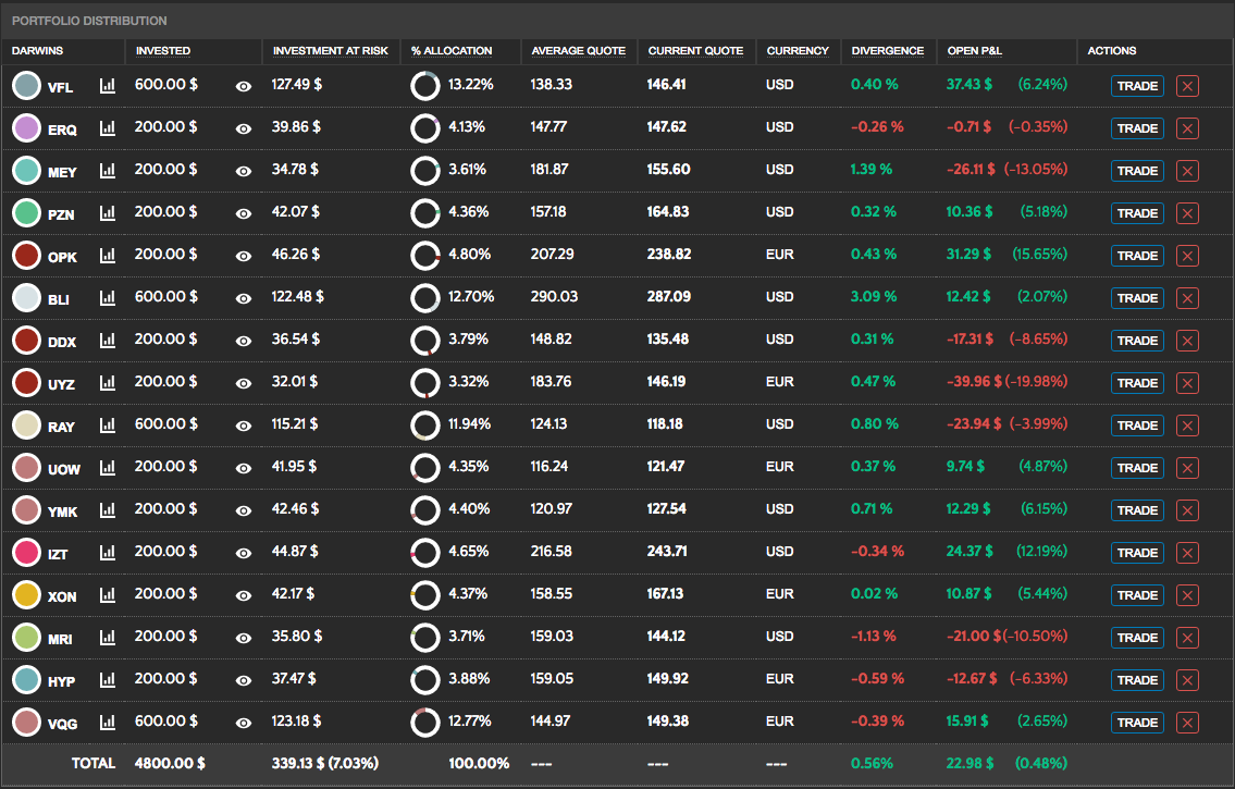 Je suis le premier investisseur sur ce Darwin ! Ceci dit pour illustrer le fait qu'il y a pas mal de travail de recherche dans la gestion de mon portefeuille.