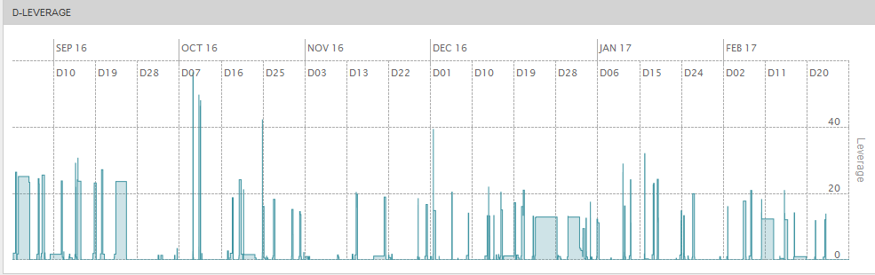 D’autre part, les stratégies qui fonctionnent avec seulement quelques trades dans le mois, et avec une courte durée, seront soumises à un plus faible écart type acceptable dans la dispersion de son levier, au-dessus de sa médiane historique (le moins de positions, et plus chacune d’entre elles aura de poids dans la VaR).