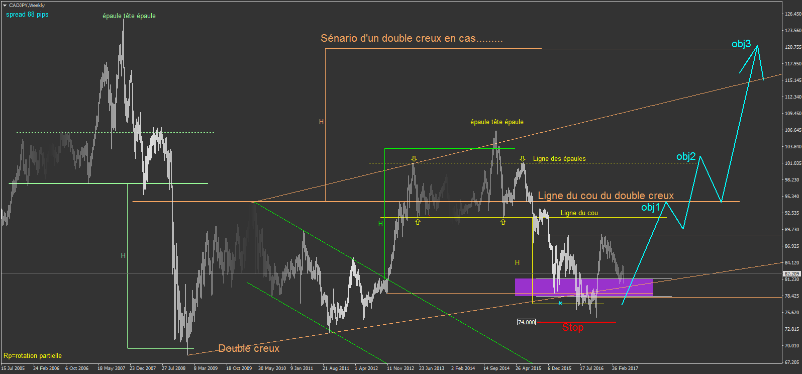 Mais cette analyse est en weekly, et ne nous sert que de scénario d'appuis pour des analyses de périodicité plus court, afin de trouver des points d'entrés, par combinaison et par combo de cas. C'est pourquoi, il ne faut pas que vous interveniez sur les analyses, que l'on montre ici simplement pour relater notre trading. toujours garder en tête que le trading comporte des risques qui restent en permanence présents et qui ne peuvent être contourné par une analyse infaillible. c'est à dire que le saint graal de l'analyse n'existe pas!!