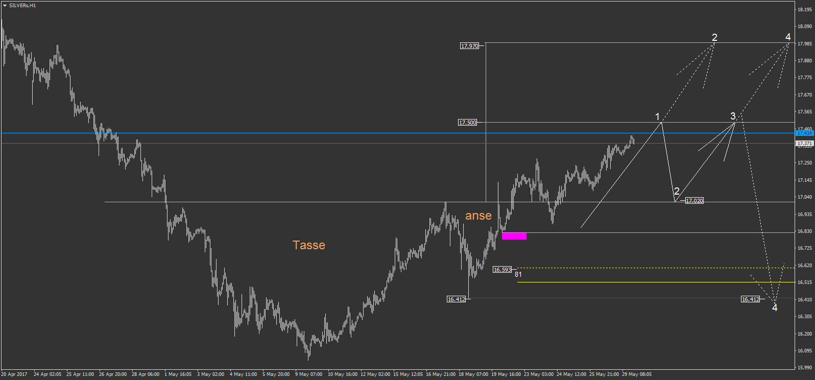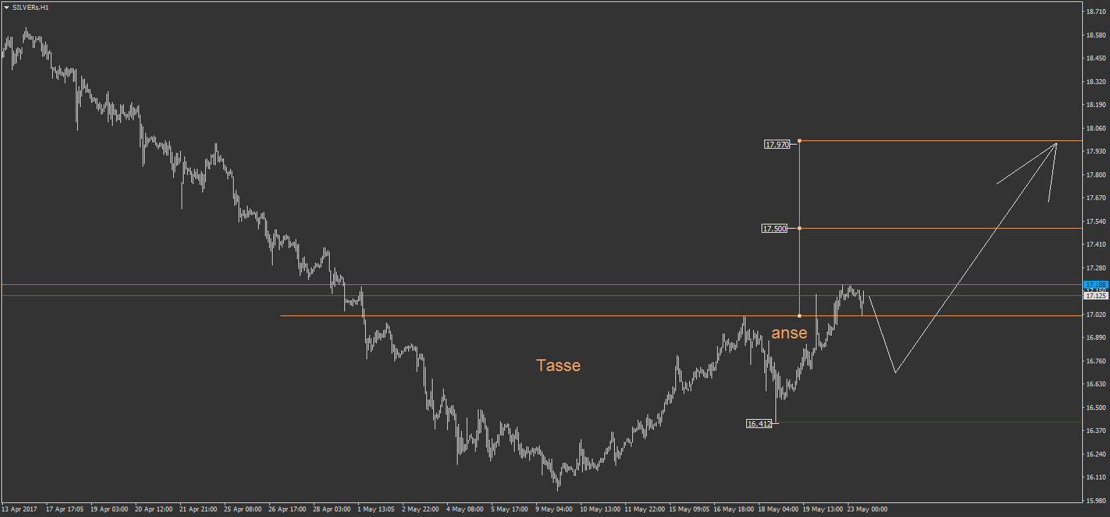 Le Silver continu d'avancer vers sont premier objectif de 17.500 et pourrait le toucher une fois première fois, avant de: