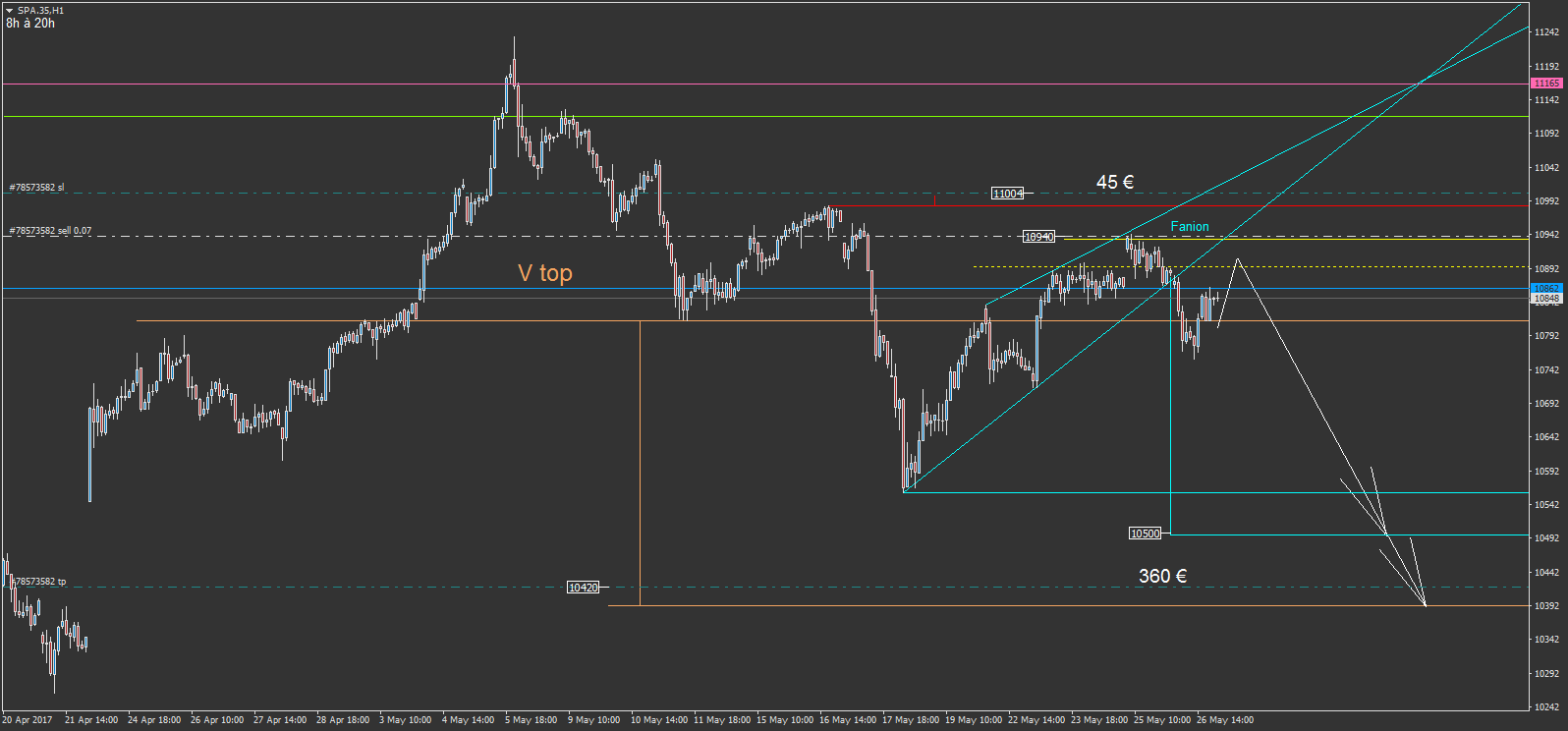 il y a un V top mon sentiment sur un éventuel trade à la baisse