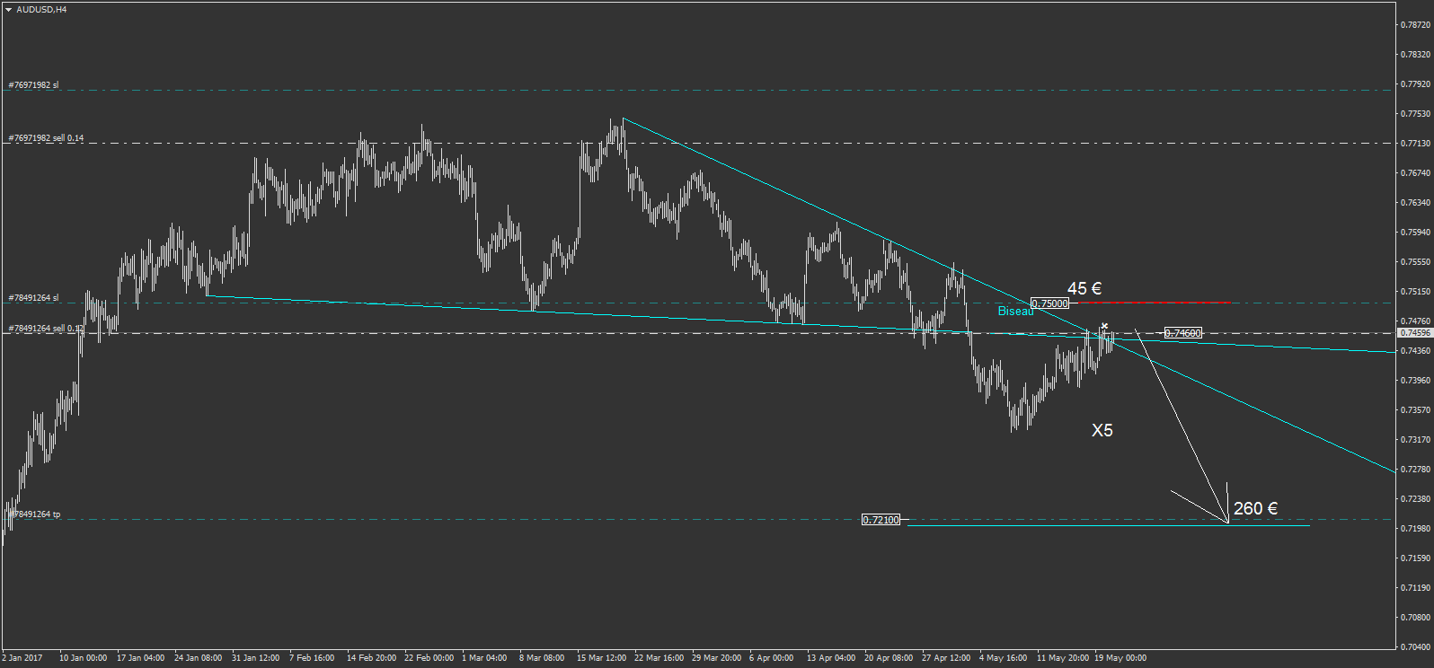Sur le AUDUSD une analyse me donne un point d'entré sur les niveau proche de 0.74000 à la baisse stop à 0.75000 et objectif du biseau 0.72100