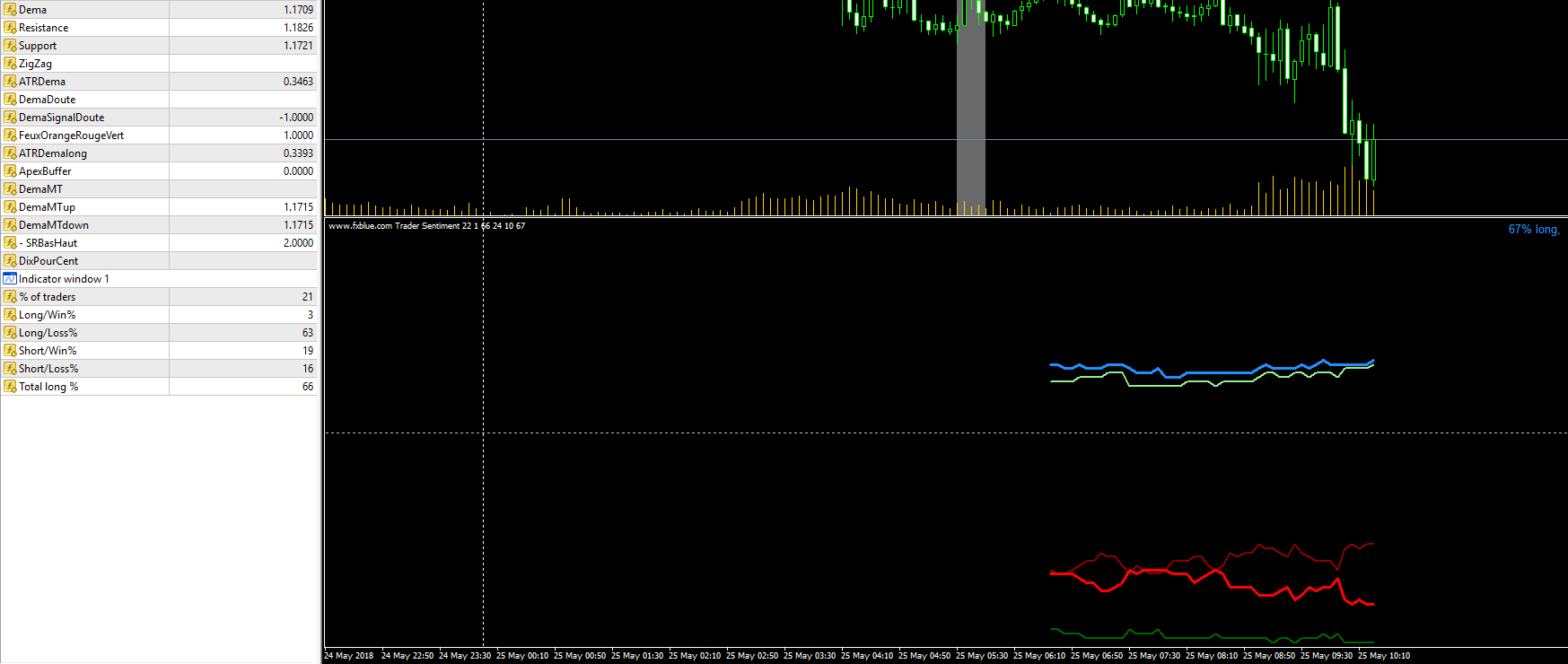 J'utilise le Sentiment Indicator MT4 de fxblue comme confirmation, l'indic donne en % à l'instant t les positions buy & sell des retails de différent broker connecté à fxblue, donc si ton signal est contre le sentiment dominant, les proba sont de ton côté.Jeff719 a écrit :C'est quoi (ssi) ?