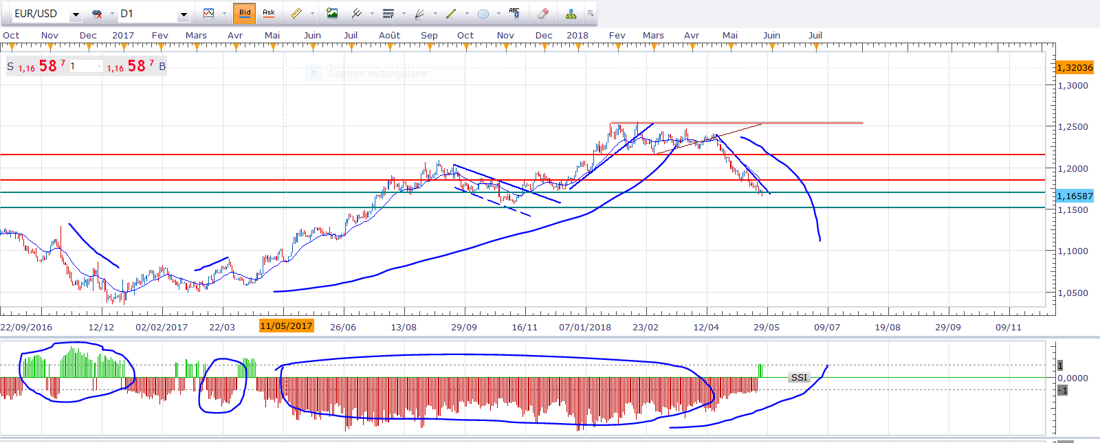 Et bizarrement pas de graphique de l'EURUSD, donc je vais le mettre et verras que ton signal n'est pas si haussier que tu l'écris.