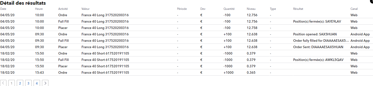 - Mon expérience personnelle sur ces produits (basée sur mon historique ci-joint). Je compte dire que personnellement je suis habitué aux CFD depuis longtemps, mais que j'ai pu facilement trouver mes repères et utiliser correctement les turbos24, qu'il s'agit plutôt de produits correspondants à des investissements à court terme, qui permettent un effet de levier plus important que les CFD, sans commission, avec une sécurité et une traçabilité importante (pas de risque de perte supérieur au niveau de knock-out, code ISIN, produits centralisés), l'avantage de ne pas pouvoir être désactivé la nuit.