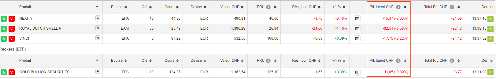 Concernant vos positions spécifiques, il n'y a rien de particulier à dire pour le moment. Ceux sont des grosses entreprises avec des capitalisations de plusieurs milliards d'euros. Vous observez une perte sur les premiers jours, mais rien d’anormal ou d'excessif.