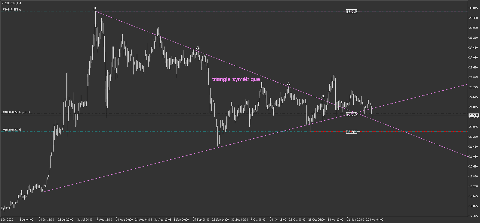 Mon Trade sur le SILVER est toujours en cours