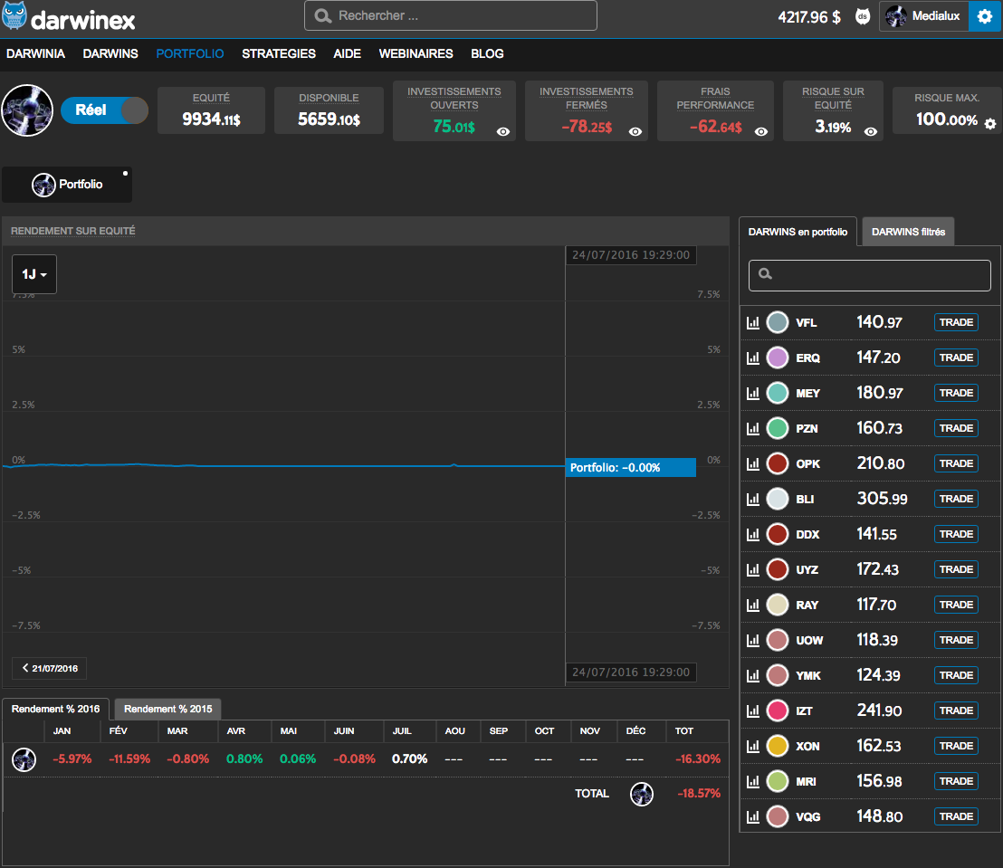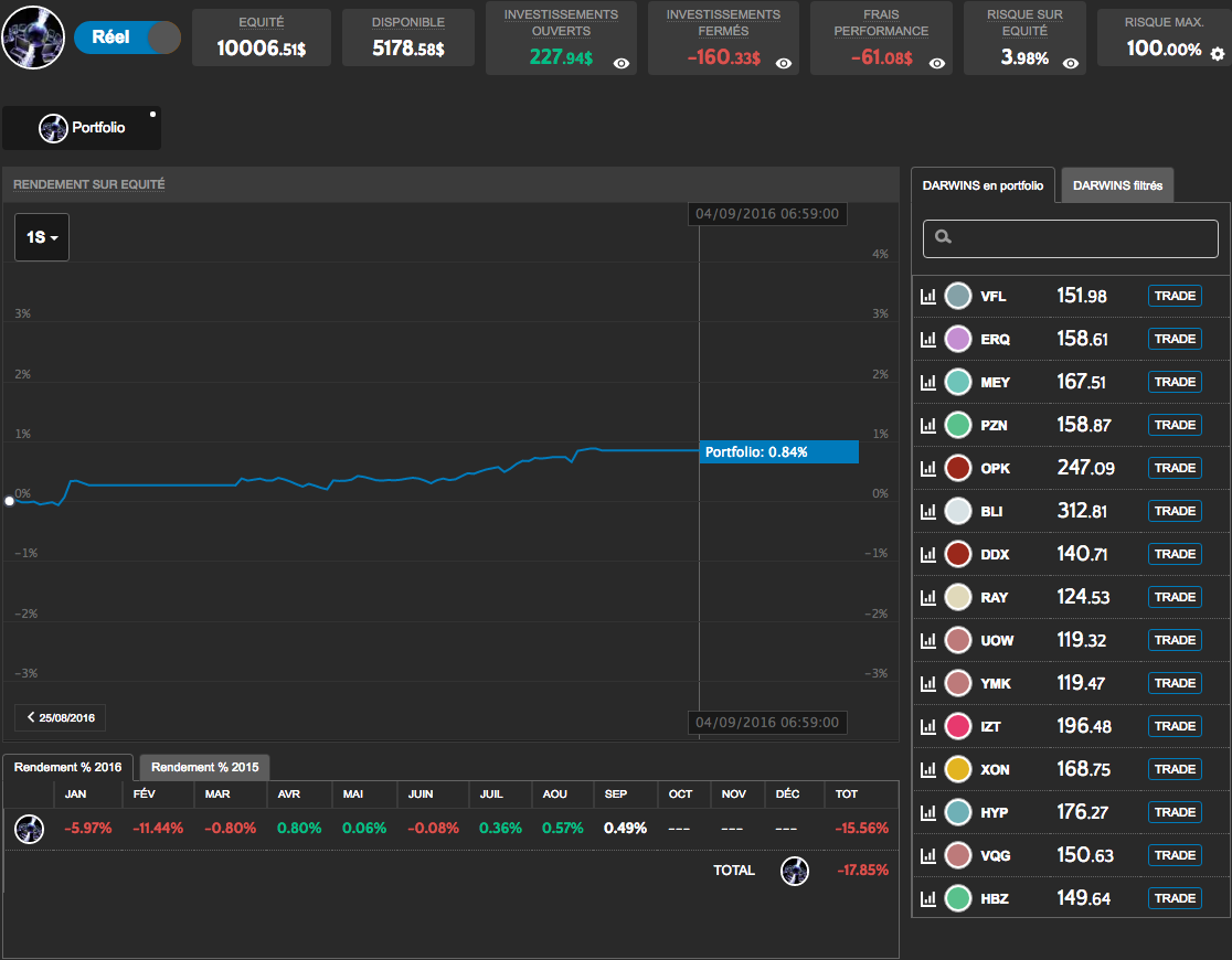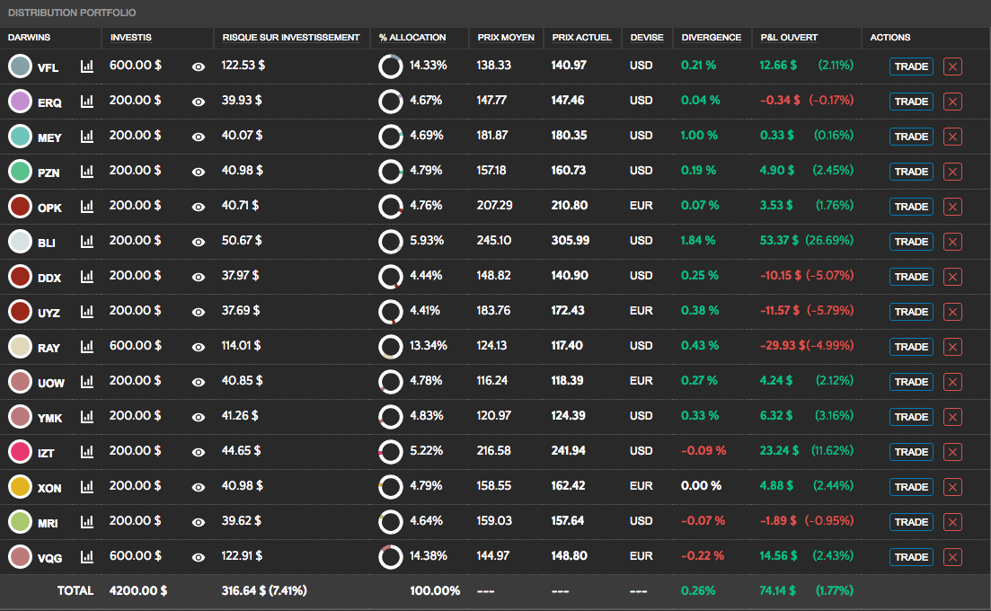 Je suis le premier investisseur sur ce Darwin ! Ceci dit pour illustrer le fait qu'il y a pas mal de travail de recherche dans la gestion de mon portefeuille.