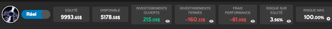 Copie d'écran à l'instant. Comme j'ai le mauvais oeil, à chaque fois que mon portif se rapproche de la zone verte, soit à 10 k. d'équité, boom !