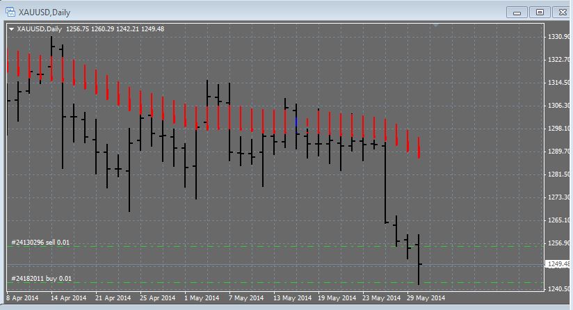 comme vous avez pu constater l'après midi ne m' a pas donné raison et le prix de l'or a continuer a retracer je suis a découvert donc de 330 points.