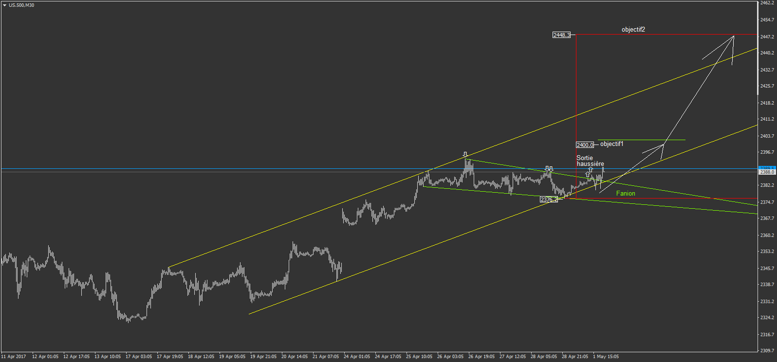 Probable piège sur US.500 mais attention, il y a le FOMC et la politique monétaire de la FED à 20h en ce 03/05/2017 autant ne rien faire d'ici là!!!! pas de point d'entré pour le moment pour moi.