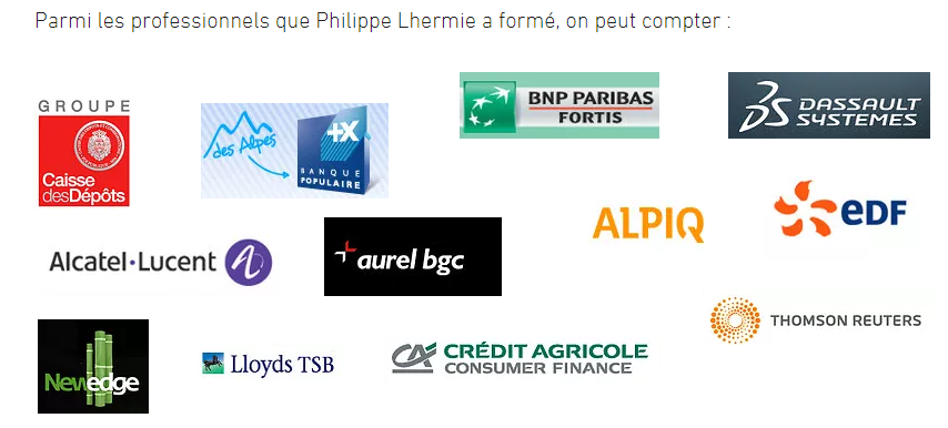 Philippe Lhermie a travaillé pendant plusieurs années en salle de marché,JUPITRADER a écrit : OK je ne le connais pas mais ce que tu dis devrait alors être précisé ainsi dans son offre de formation :"je vous transmets mes connaissances du marché mais il vous appartient de trouver votre stratégie gagnante". Et au moins en disant cela, le client n'est pas trompé. Mais je ne pense pas qu'il le précise dans son offre de formation. Ca sous-entendrait quand-même que lui même n'a jamais réussi à trouver sa propre stratégie gagnante.