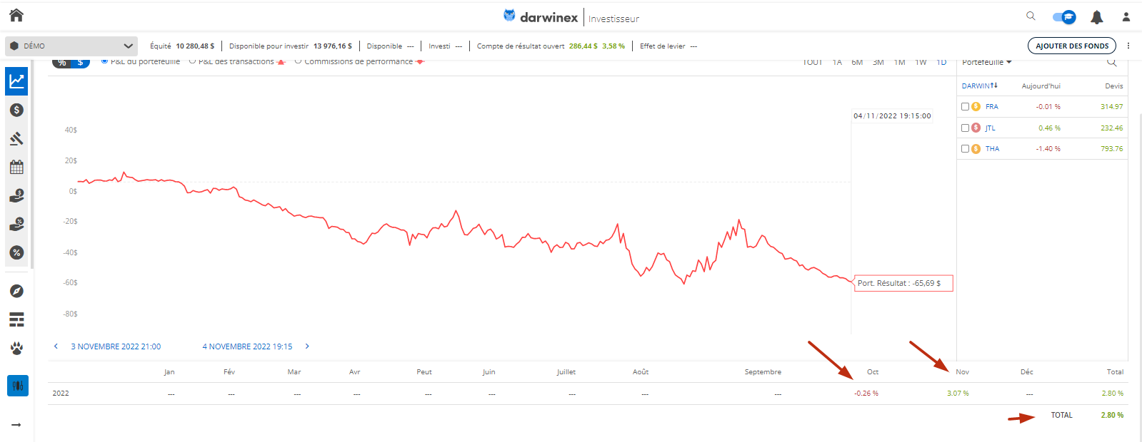 Je vous avais présenté Darwinex et j'avais pris une position long terme ile 13 septembre sur des DARWIN