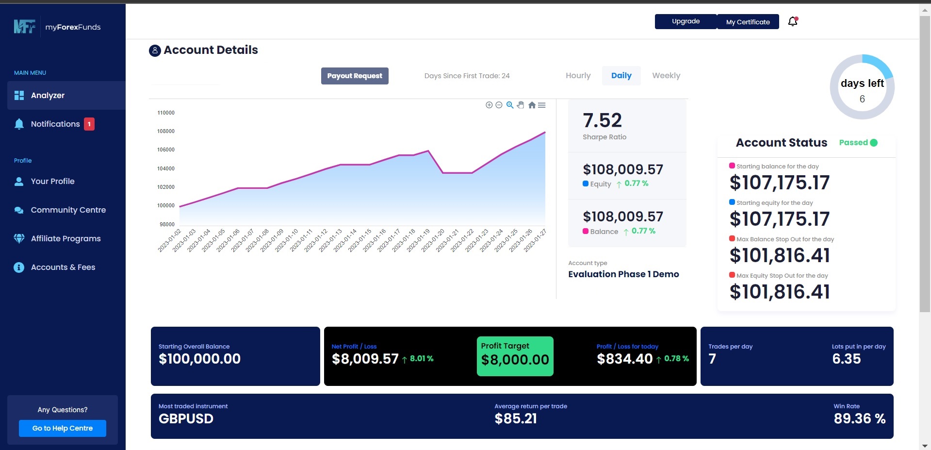 Ceci étant, je continue mon petit bonhomme de chemin vers la quête de plusieurs comptes dans toutes les Prop Firms.