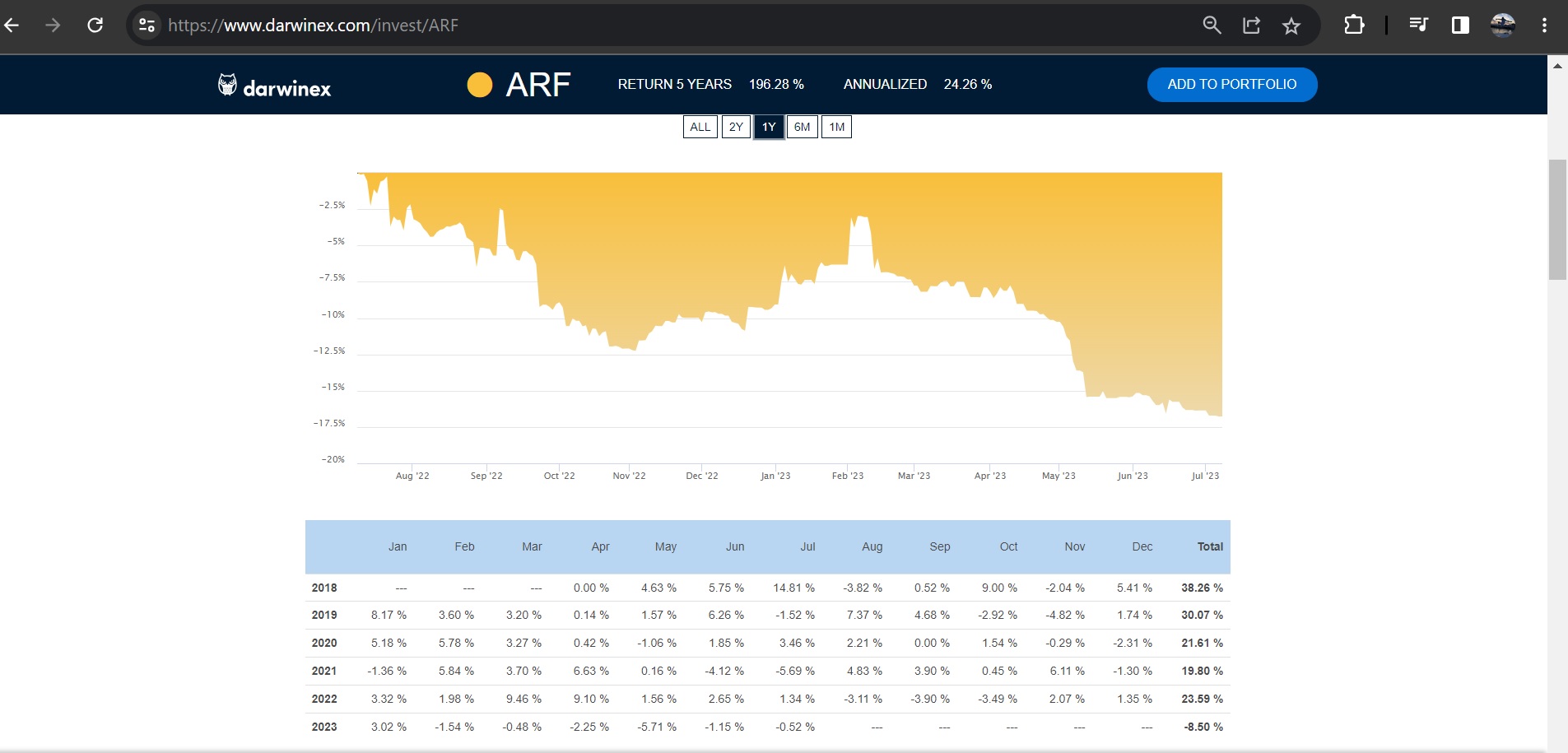 Le Darwin de la "French Team" ARF, quant à lui, continue sa déconfiture, telle une longue agonie, il en est à + d'1 an de Drawdown :