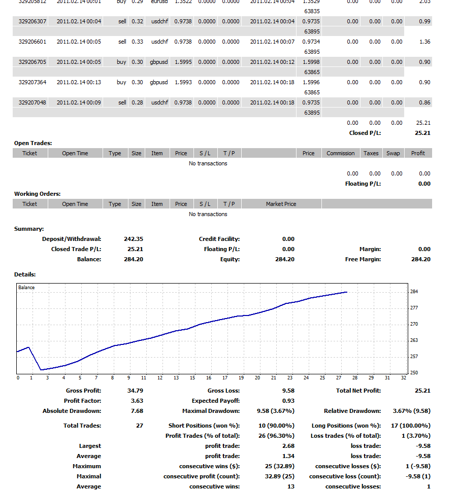 De son côté la version V1 à fait qu'un seule trade sur forexpeacearmy de +5 pips sur eur/usd