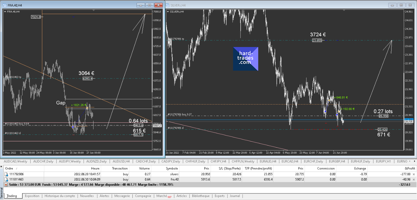 Je rachète le CAC40 (FRA40) et j'ai encore le Silver qui lui se rapproche de mon stop