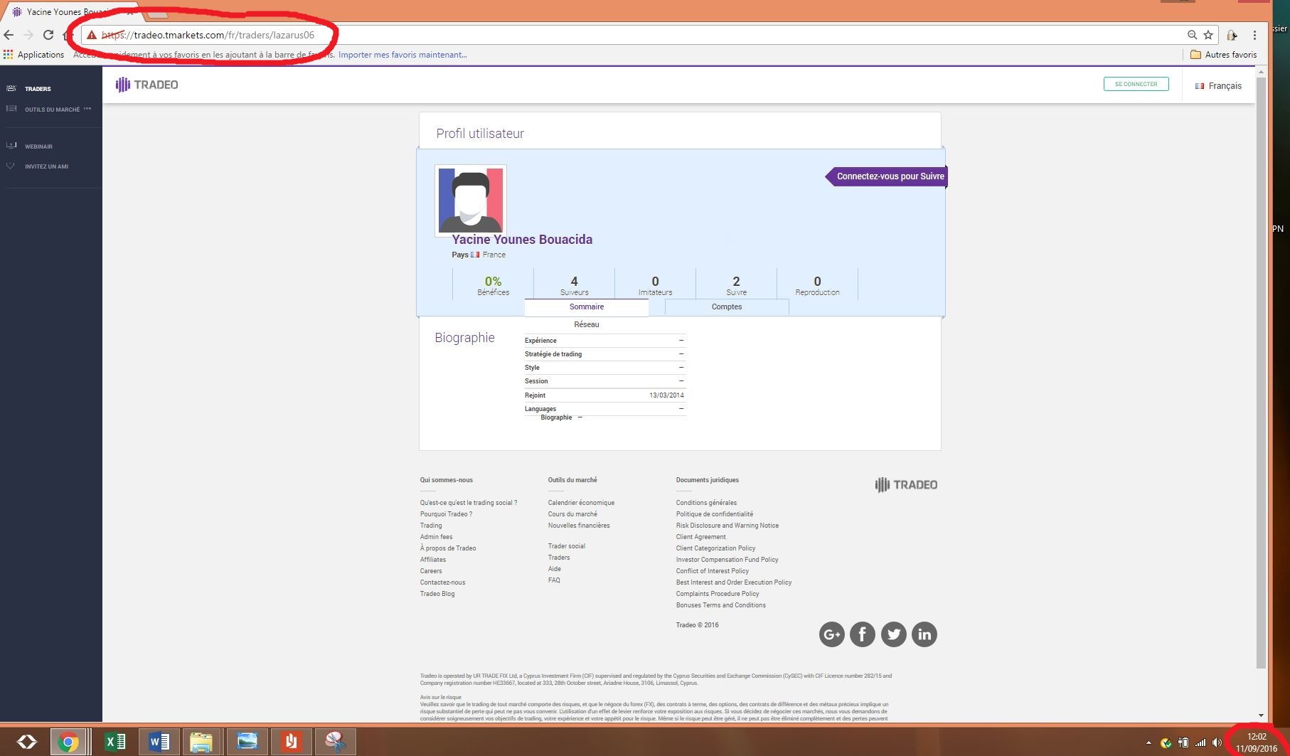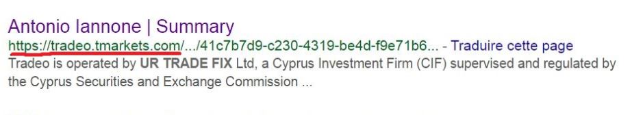 Merci pour vos contacts et commentaires, ci joint capture écran actuelle de google montrant Tradeo et Tmarkets lié dans l'adresse http d'un client actuel de Tradeo!