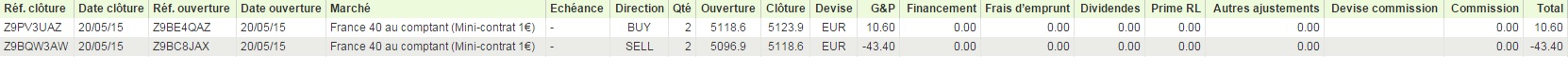 Ce jour deux trades perdant de 30€.