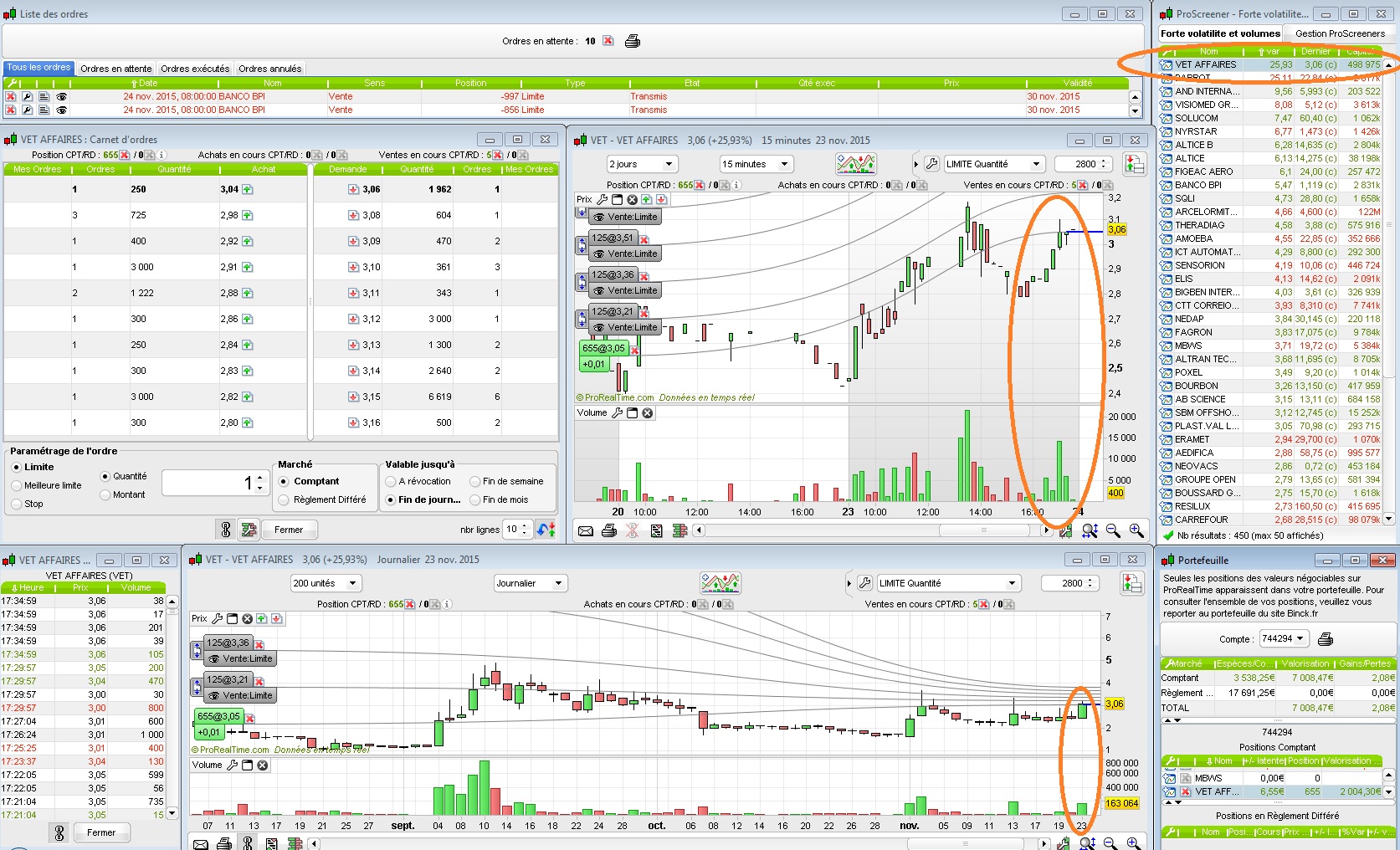 Précédement, jeudi, j'avais acheté MBWS qui avait bien montée vendredi, mais que je n'ai pas pu fermer car j'étai à un salon. Je l'ai fermée ce matin, et on avait de nouveau une hausse, donc ça s'est vraiment bien passé: