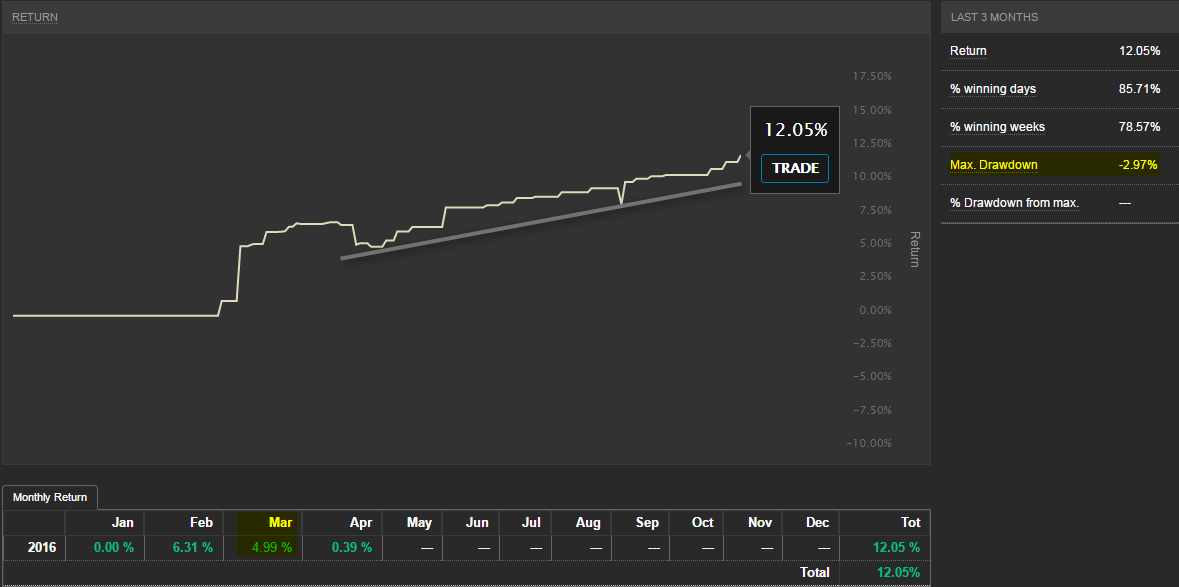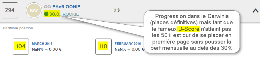 Et je suis assez enclin à investir sur de nouveaux Darwin, avec un track court. Selon mon expérience, un trader ou un algo ont une durée de vie limitée à leur apogée, donc attendre en laissant passe le train, ce n'est pas forcément la meilleures solution non plus.