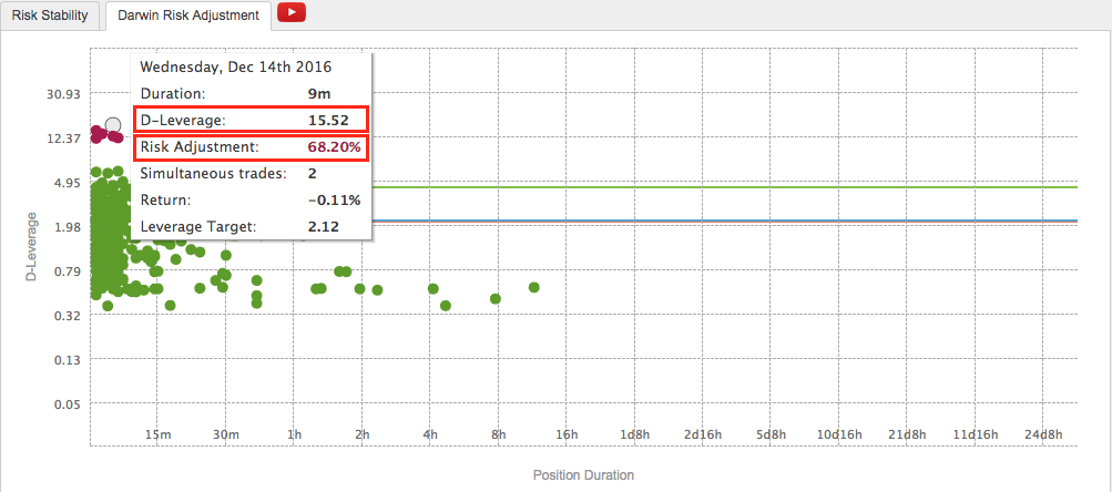 Toujours à propos de la VaR, mon Drawdown Max. de la semaine est indiqué à -0.04% sur le Darwin, mais le système, au travers de la VaR de la stratégie, indique un risque probable/possible de 16.6 %, soit 415x plus. On nage en plein délire.