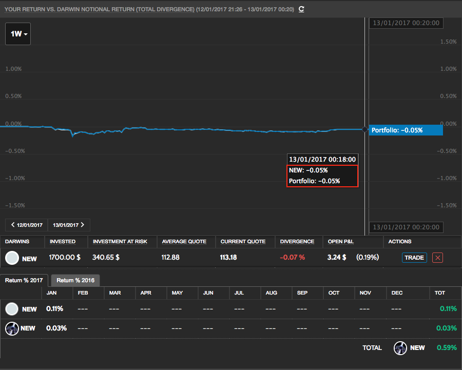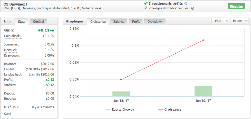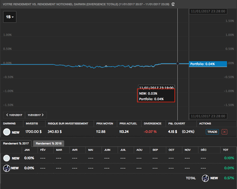 Reprise du trading sur mon Darwin NEW après la pause durant les fêtes.