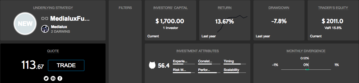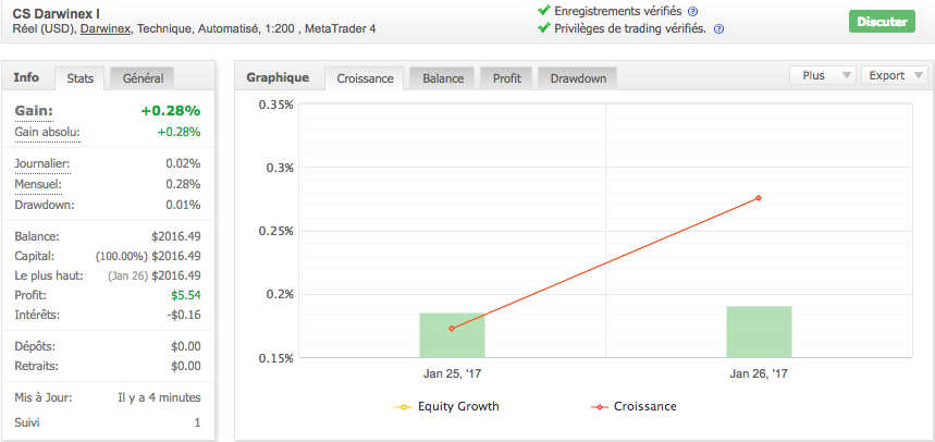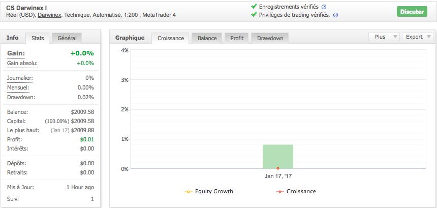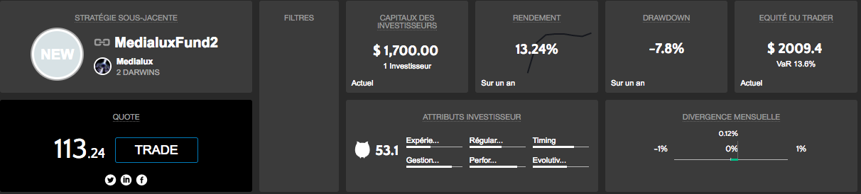 En effet, Darwinex offre la possibilité d'investir un montant de $ 200.-- sur un Darwin.