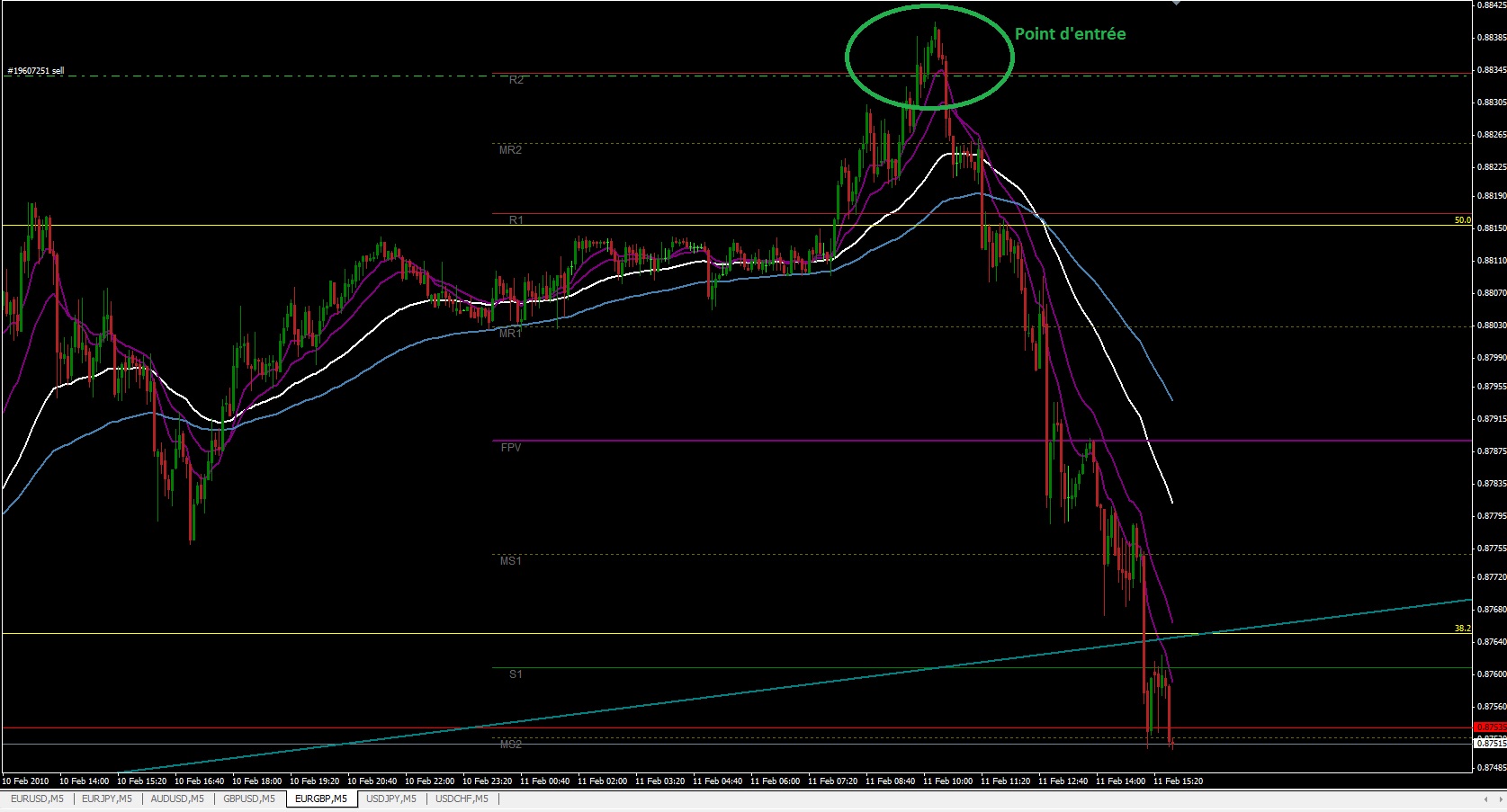 Bonjour à tous, c'est pas que je veux me venter (d'ailleurs j'aurais l'air con avec la perte en cours que je me trimballe depuis quelques semaines) mais je suis fière de mon trade sur EUR / GBP, donc je le post: