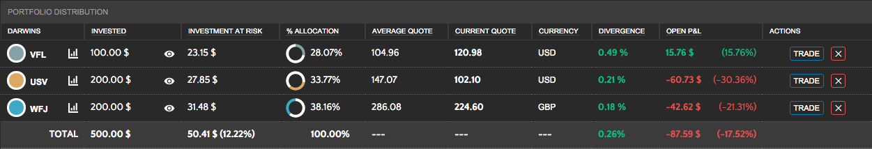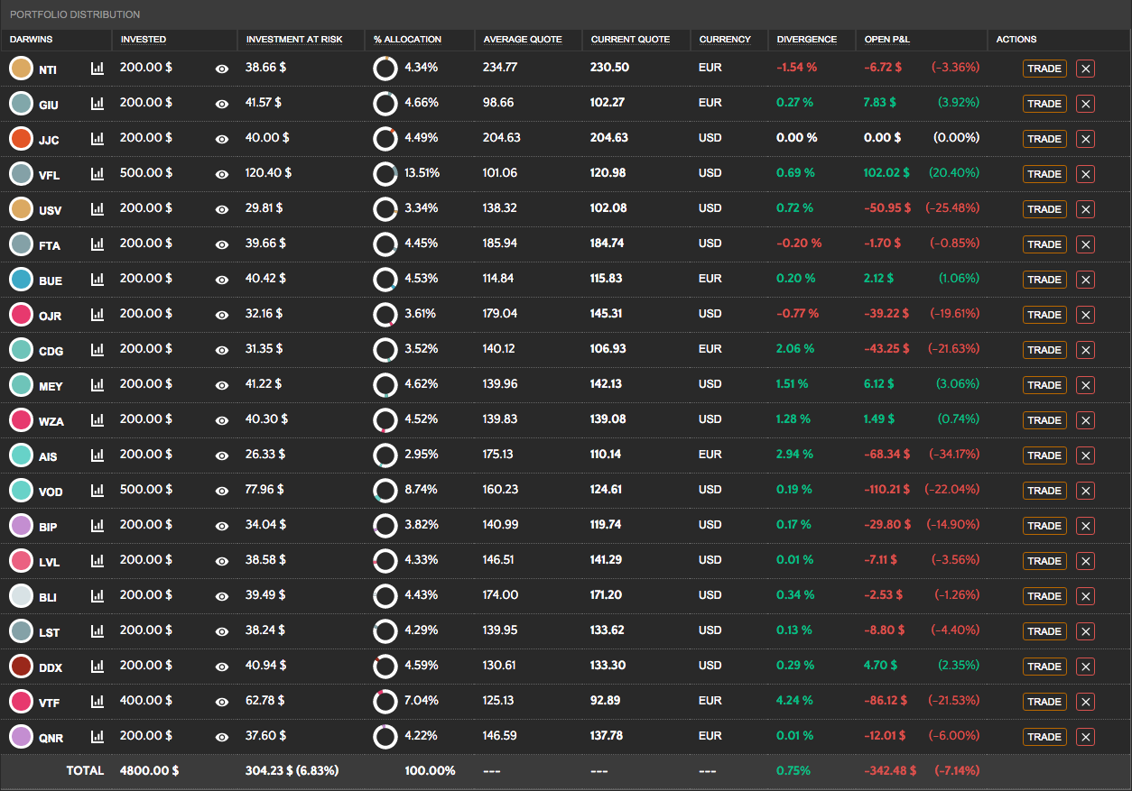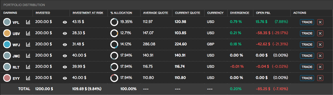 Voici une mes portefeuilles investisseurs démo et réels Darwinex.