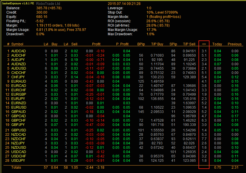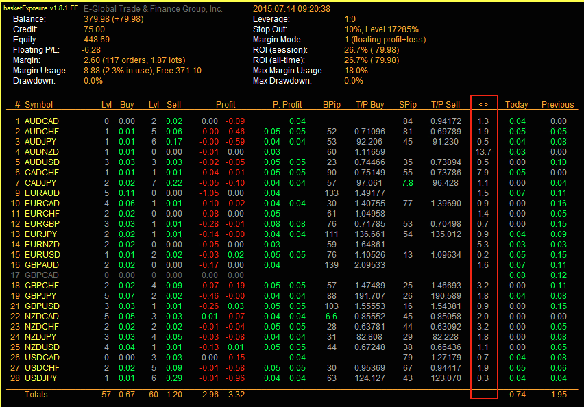 Donc lors de mon inspection matinale, je constate que sur la paire CADJPY a accumulé 10.33 lots ouverts sur buy, et que le flottant du compte est supérieur à 10 k.