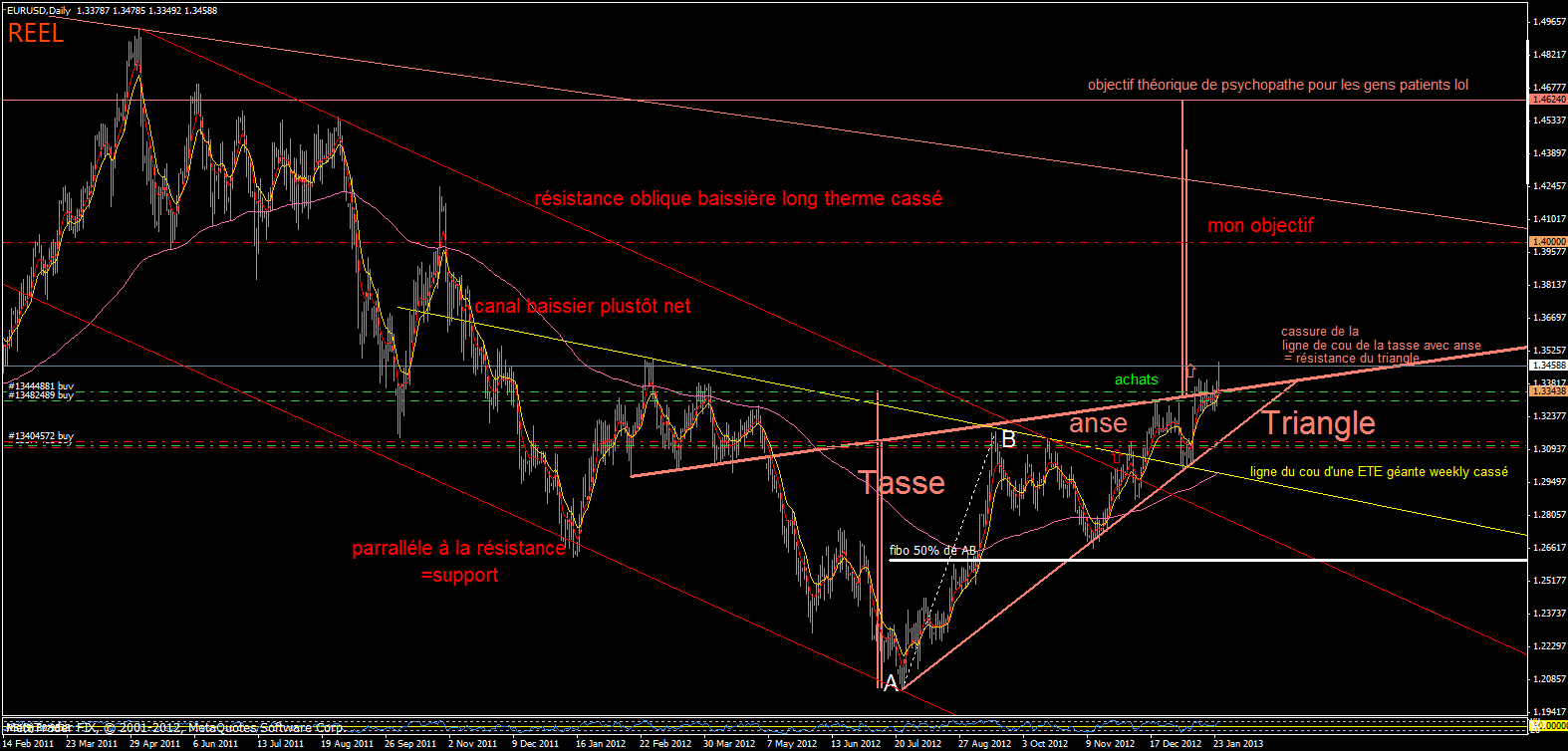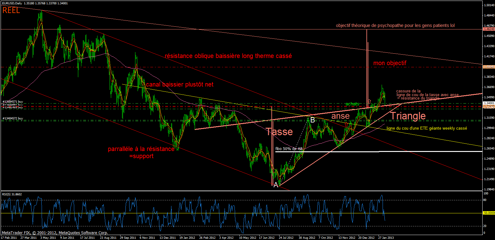 voici éffectivement une tete épaule inversé interressante. ca tombe bien car sur bfm radio tout a l'heure ils nous parlaient d'une tete epaule inversé pouvant amené les cours plus haut que 1,40. alors je suis rentré chez moi pour chercher cette tete épaule, mais je n'imaginais pas la voir ici répèrtorié, merci Kris1410.kris1410 a écrit :Salut, j'essaie de m'entraîner aussi et voyez vous comme moi un ETE inversé sur EURUSD en mensuel entre le 20.11.2011 et aujourd'hui?