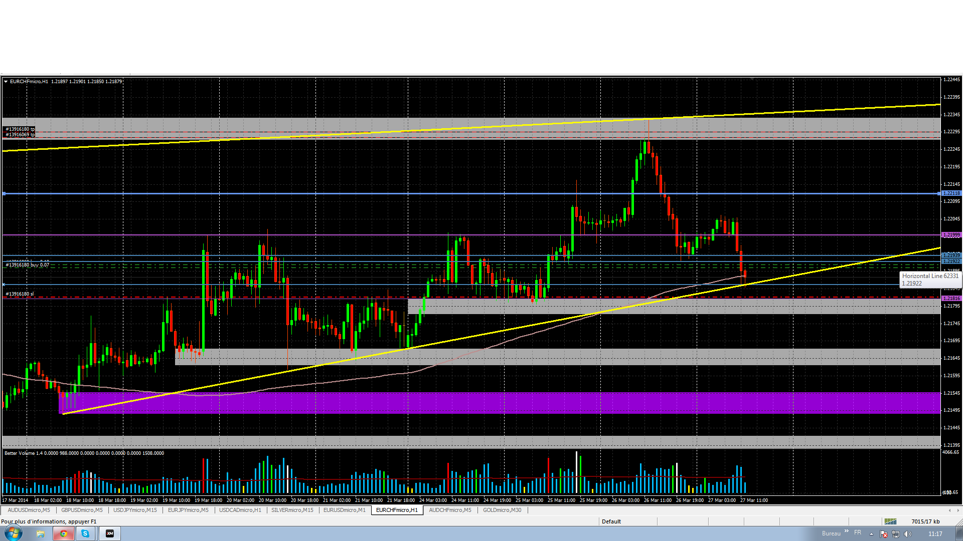3) on a en vert un support oblique qui se casse également dans la zone du canal violet ce qui conforte les bears qui vendent ils sont rassuré ce qui va a mon avis vas duré !