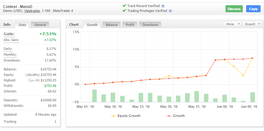 Nos comptes démos et live tournant en parallèle sont également positifs et après 3 mois et demi nous continuons notre aventure...