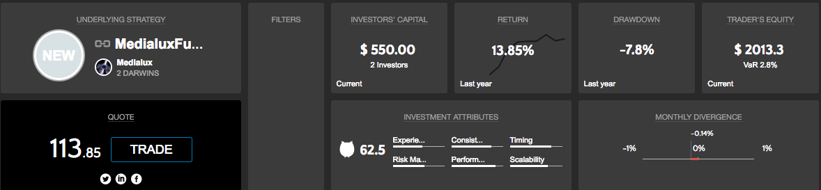 Si on admet que le risque de ma stratégie est de 1% pas jour, je trouve frustrant que le système impose un DD 6 à 10 % par jour aux investisseurs qui feraient confiance au Darwin connecté à ma stratégie.