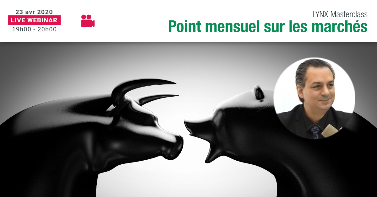 Entre Peur et Opportunisme, Analyse Marchés avec Benoît FERNANDEZ-RIOU - LYNX MasterclassDans ce webinaire LYNX Masterclass récurrent, nous ferons le point en détail sur les marchés financiers avec Benoît FERNANDEZ-RIOU. Suite à une analyse approfondie, nous envisagerons des perspectives et des opportunités sur un horizon swing trading. Au cours de ce webinaire y seront abordés les principaux indices (CAC, DAX notamment), les devises majeures (Dollar, Euro, Sterling, Yen…) et selon l’actualité certaines paires exotiques et commodities.