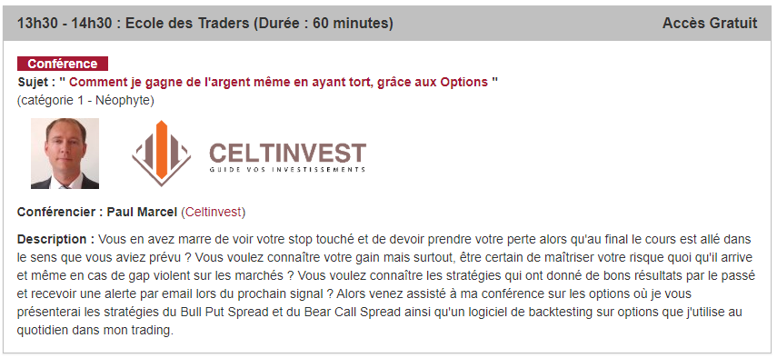 Re: Formation au Trading sur Options par Paul MARCEL Celtinv