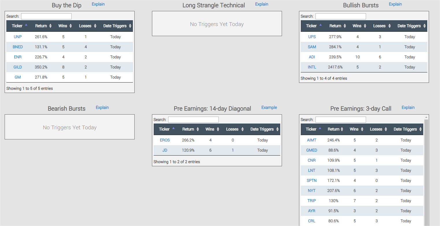 Grosse amélioration apportée au logiciel de bakctesting sur options. Rien que sur la page d’accueil vous retrouvez en un coup d’œil tous les setups du jour.